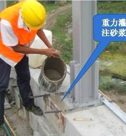 2、攪拌均勻的漿料,放置1-2分鐘,待其中的氣泡基本消失,即可進(jìn)行灌注。 灌注高度超過(guò)鋼板底面5-10mm。如果側(cè)擋模板露漿,需要及時(shí)補(bǔ)漿,避免出現(xiàn)充填不滿情況。
